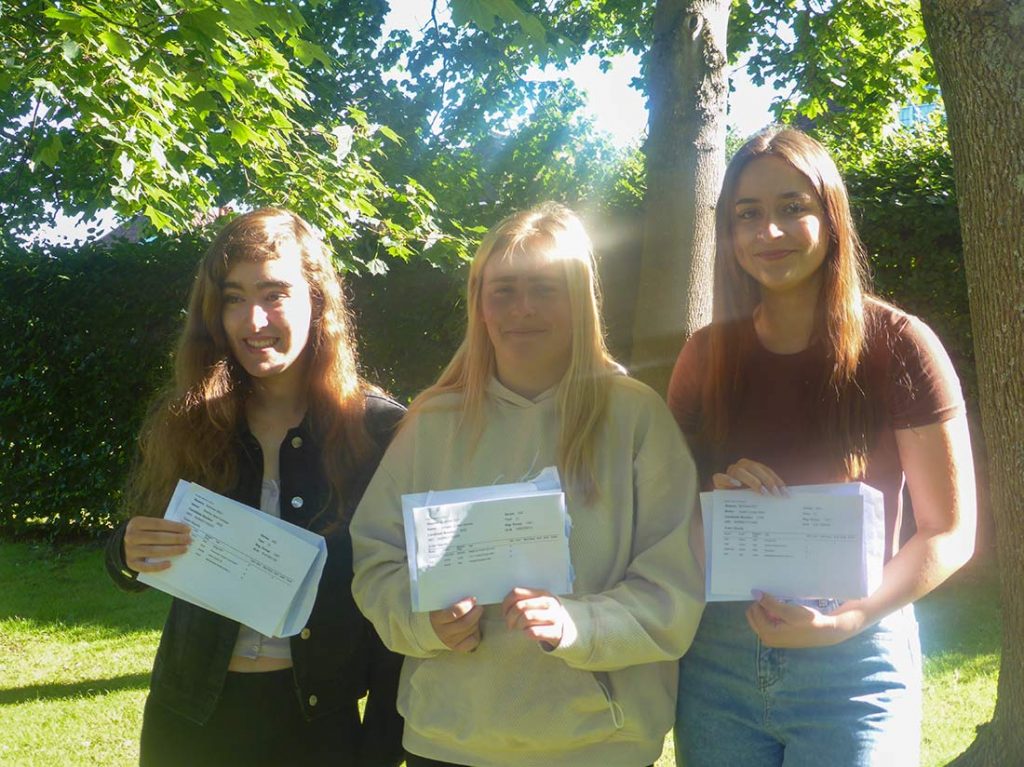 Pictured are Sophie, Immie and Caitlin who will go on to study Modern Foreign Languages. Physical Education with Sport and Youth Development, and Children’s Nursing respectively.